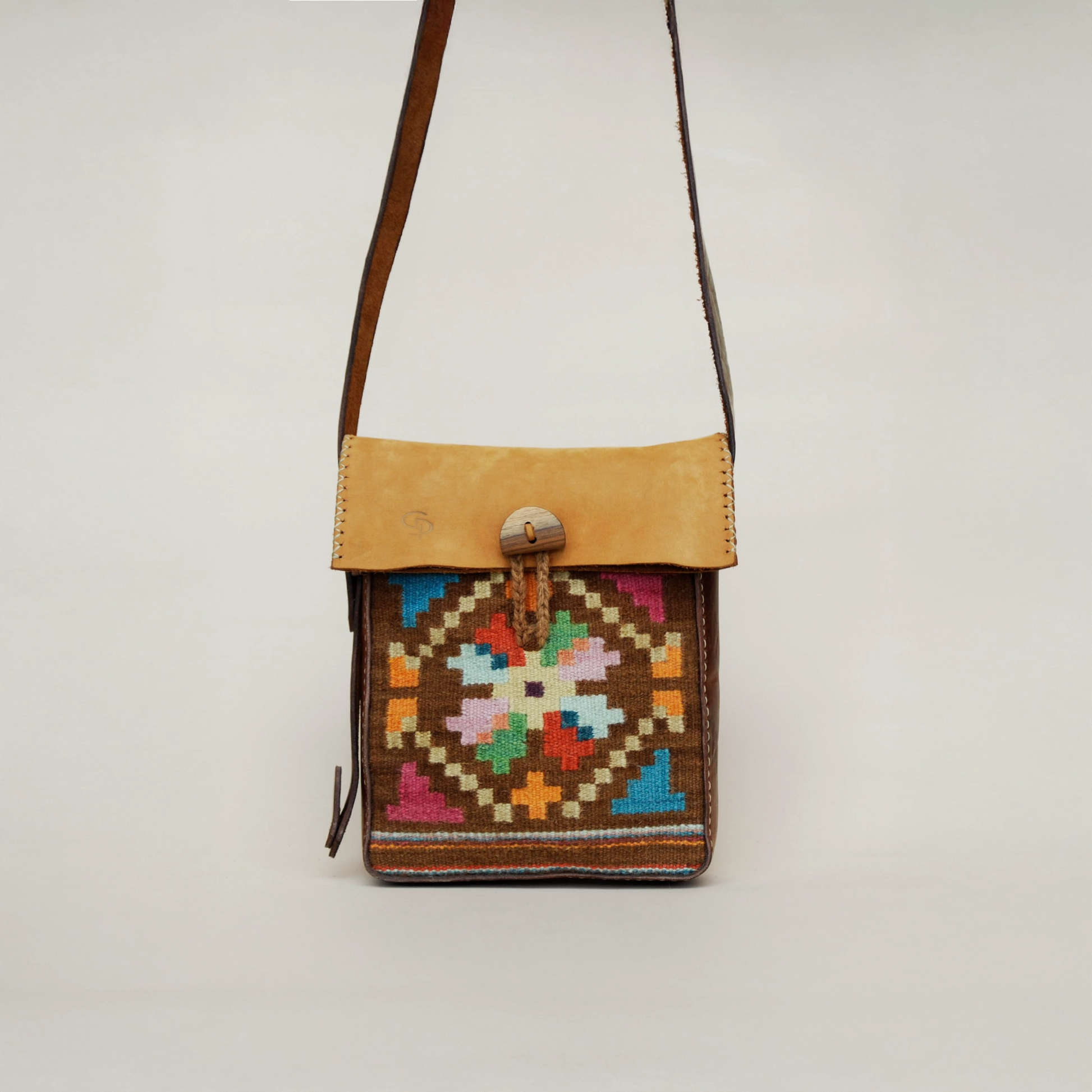 Woven with traditional Georgian ornaments and naturally dyed wool, inspired by endemic flowers of Vashlovani, this compact messenger bag carries both function and heritage in every detail. Just the right size for your everyday essentials, it’s finished with an adjustable strap and secure closure.