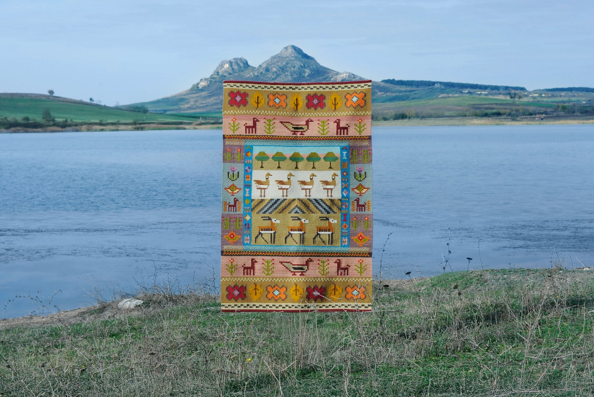 Made from naturally dyed Georgian wool. Inspired by the graceful gazelles of the Vashlovani Protected Areas, this handcrafted rug tells a story of wildlife, open landscapes, and harmony with nature. Its figurative patterns and warm, earthy tones reflect life in the wild, celebrating movement, freedom, and the rich biodiversity of the region. A unique statement piece that brings nature’s rhythm into your home