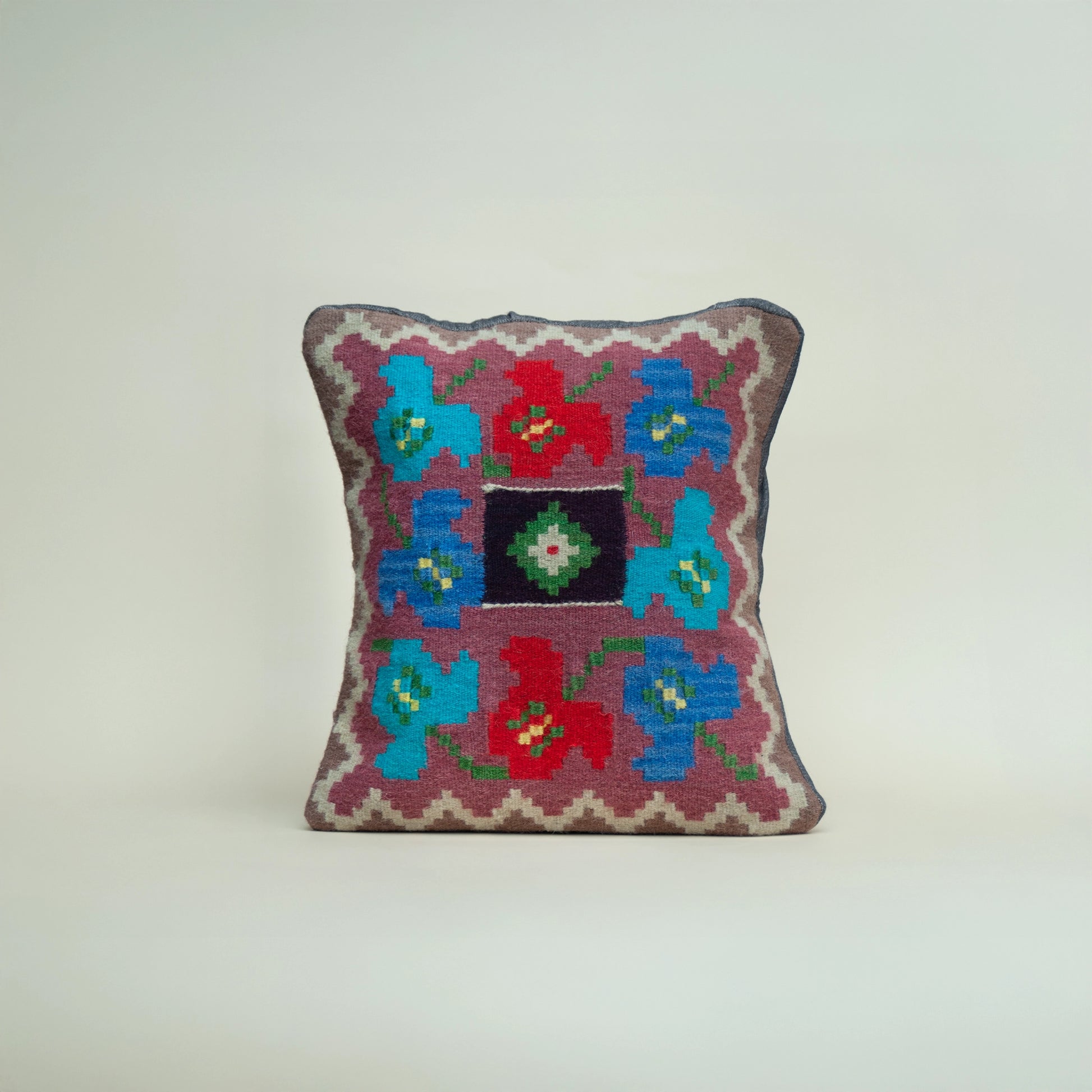 This handwoven pillowcase features a floral motif, inspired by the natural landscapes of Georgia and the tradition of storytelling through ornament. Each flower is woven with care, symbolizing life, renewal, and connection to the earth. Made from naturally dyed Georgian wool, it brings warmth, texture, and a touch of nature into any living space. Crafted by hand in Dedoplistskaro using traditional techniques.