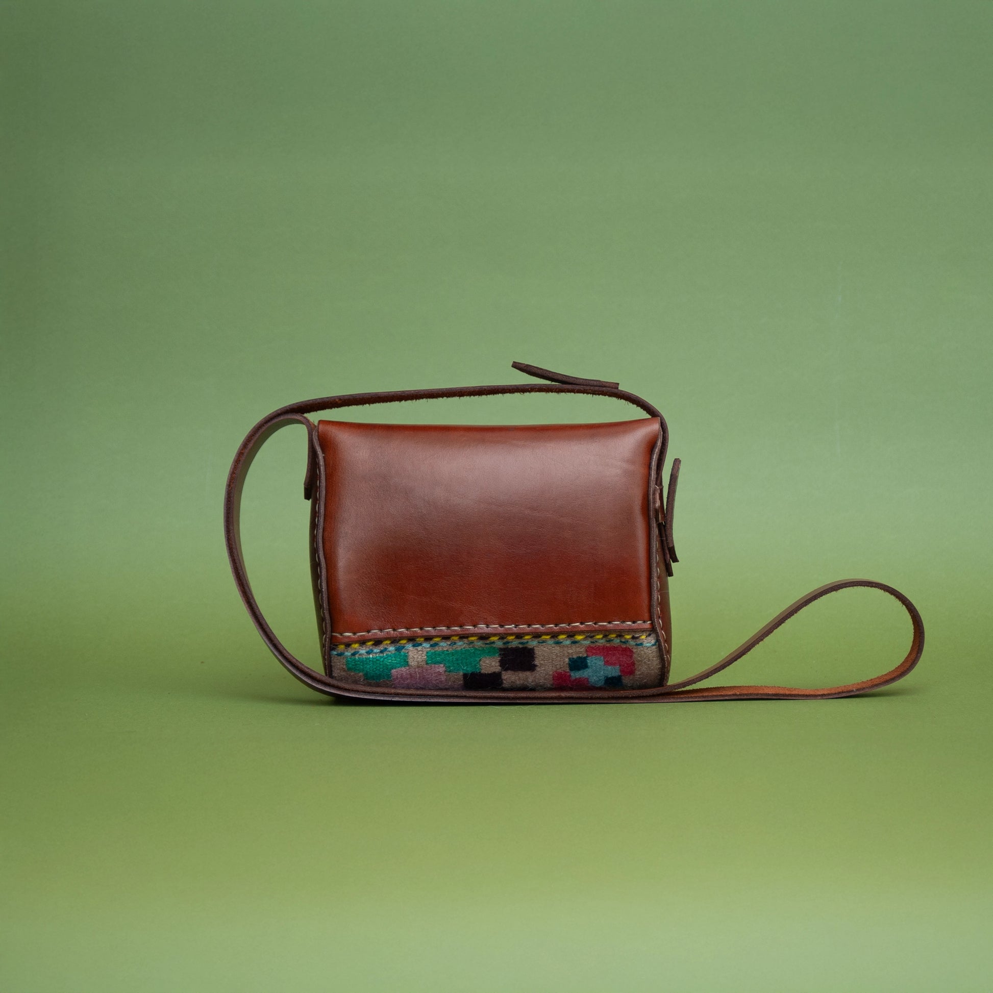 Bold geometric motifs give this handwoven crossbody bag a modern edge with traditional roots. Made from naturally dyed Georgian wool, it features an adjustable strap, secure closure, and a compact yet practical size for daily essentials. Handcrafted in Dedoplistskaro using time-honored weaving techniques.