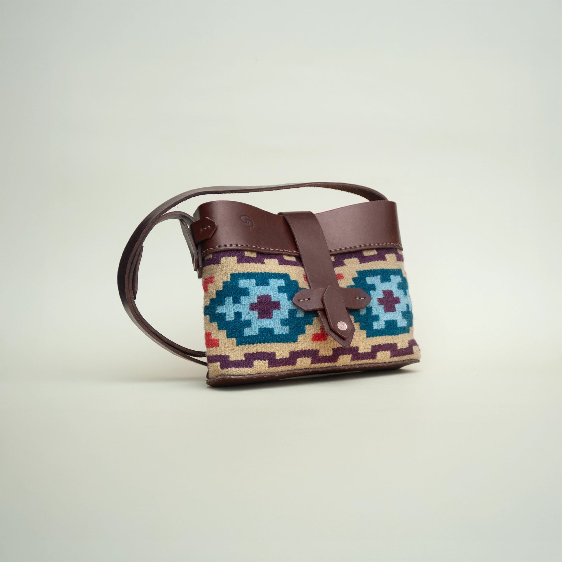 This handmade crossbody bag blends traditional Georgian weaving with a modern, functional design. The adjustable strap ensures comfortable wear, while the spacious interior holds all your daily essentials. Crafted from naturally dyed wool using indigo and Saperavi grape skins, and finished with durable leather for added strength.