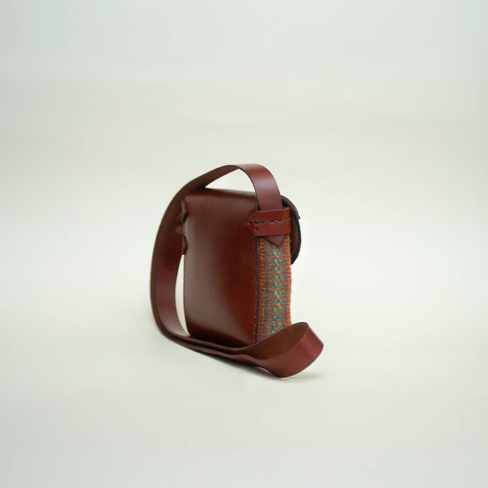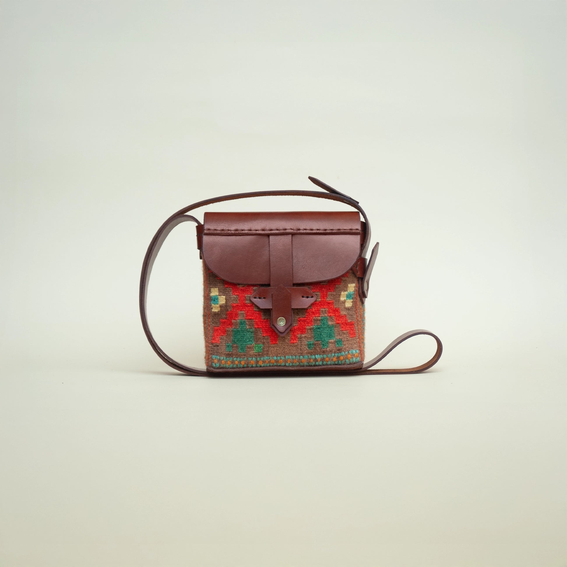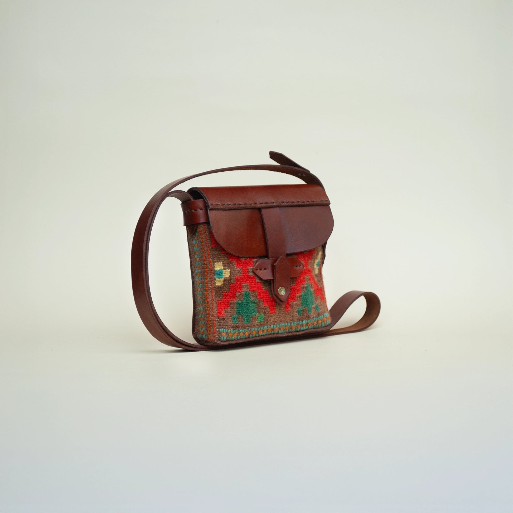 A small crossbody bag made from handwoven wool with traditional Georgian ornament. Ideal for hands-free use with an adjustable strap.