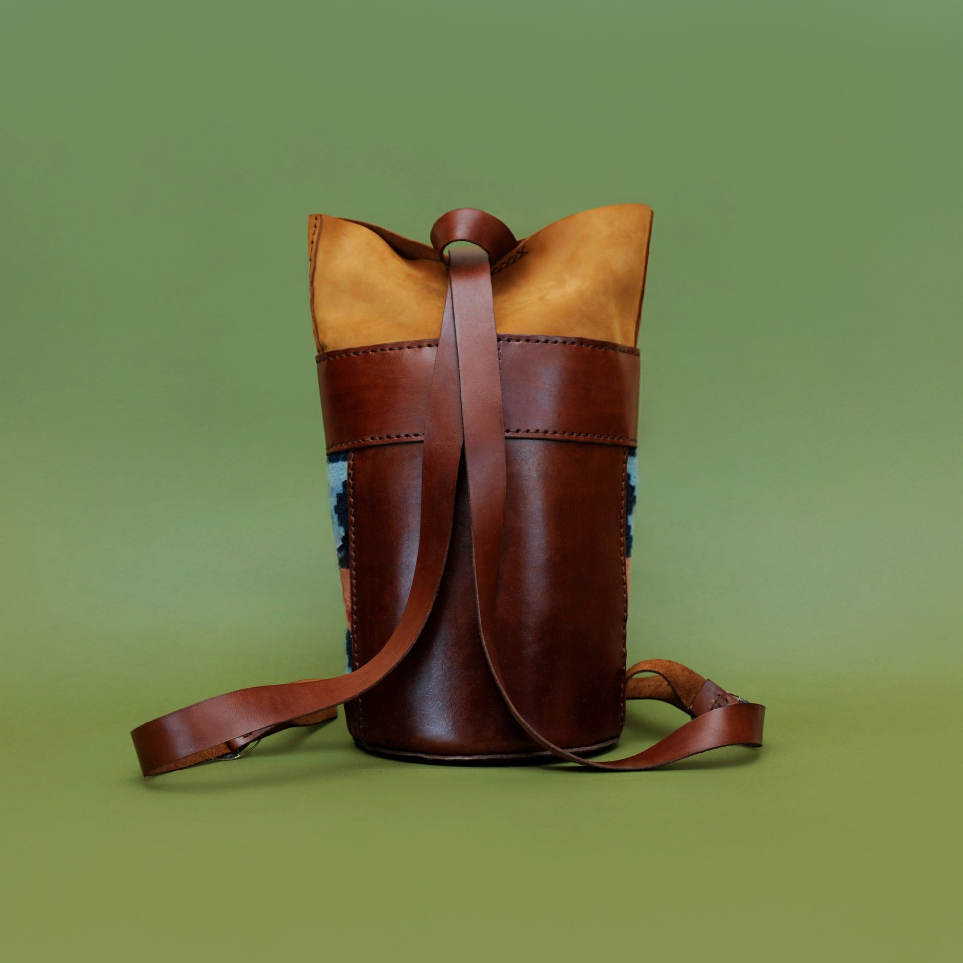 Handwoven from naturally dyed Georgian wool. Backpack made with leather and traditional woven textile. Featuring a unique geometric pattern inspired by two elements: water and land. This backpack blends timeless craftsmanship with everyday functionality. Perfect for those who appreciate authentic, durable, and distinctive design.